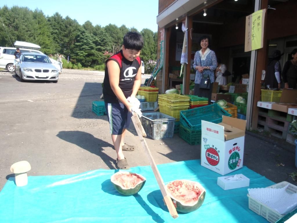 小林農園浅間サンライン直売店、恒例のスイカ割り大会を今年は暦の関係で28日(日)に行いました。