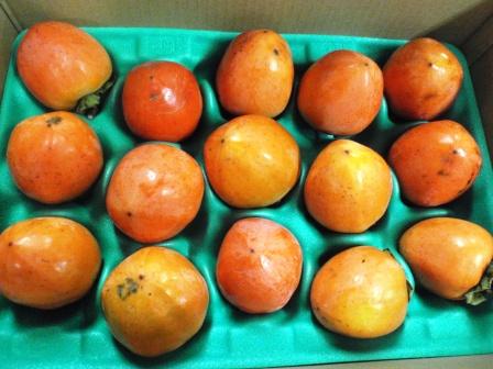 果実は重量350gくらいの大果で、橙紅色の不完全渋柿である。
