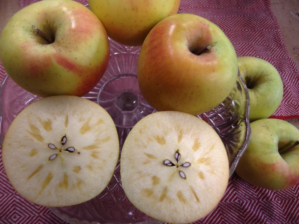品種登録されました。果皮は黄色で一部にうっすらと赤く染まることもあります。