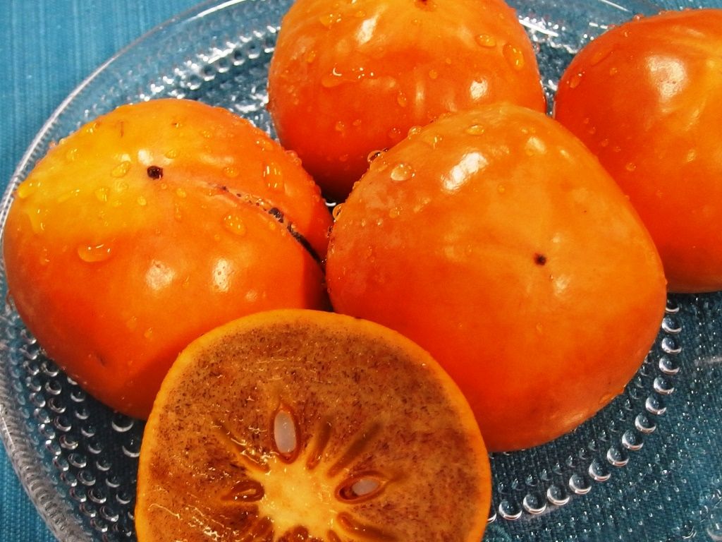 不完全甘柿のため甘みが出ると果肉にゴマ(黒い斑点)が入ります。