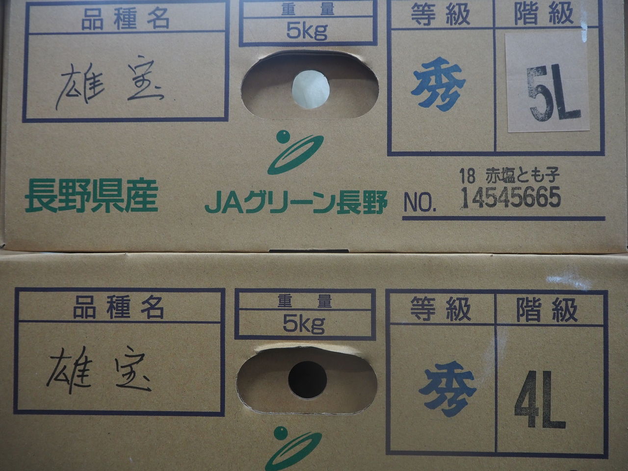 ◎価格 1ケース 約5㎏ 等級・秀 サイズ・5~4L(7~8房入り)¥8380- です。