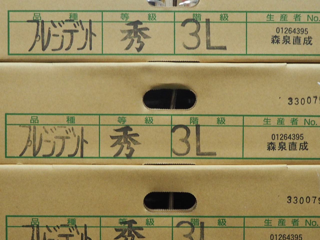 ◎価格 1ケース 約7.5㎏ 等級・青秀 サイズ・4L(24玉入り)¥4050- です。