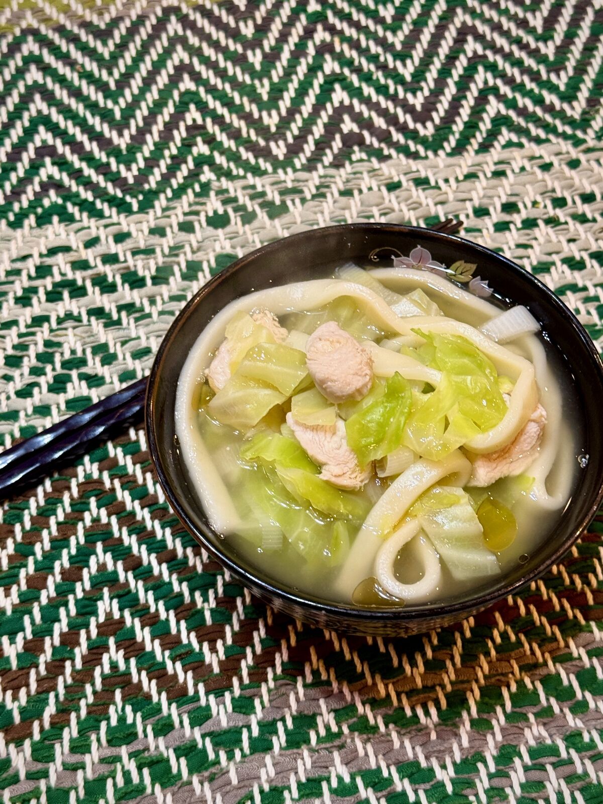 ◎主な材料・・・うどん、鶏ささみ、キャベツ、長ねぎなど です。