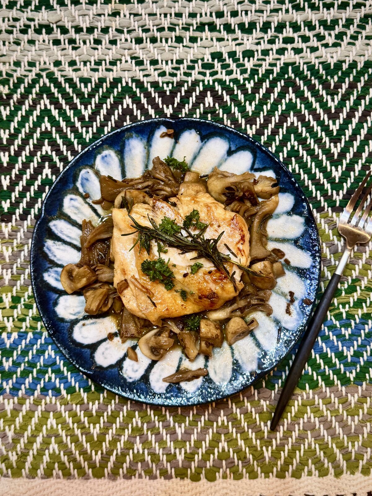 ◎主な材料・・・鶏むね肉、マッシュルーム、舞茸、にんにく、ローズマリー、アンチョビフィレ、パセリなどです。