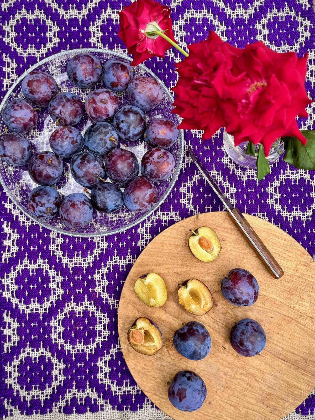 果皮は、赤みを帯びた濃い紫色で、白い粉(ブルーム)が付着しております。