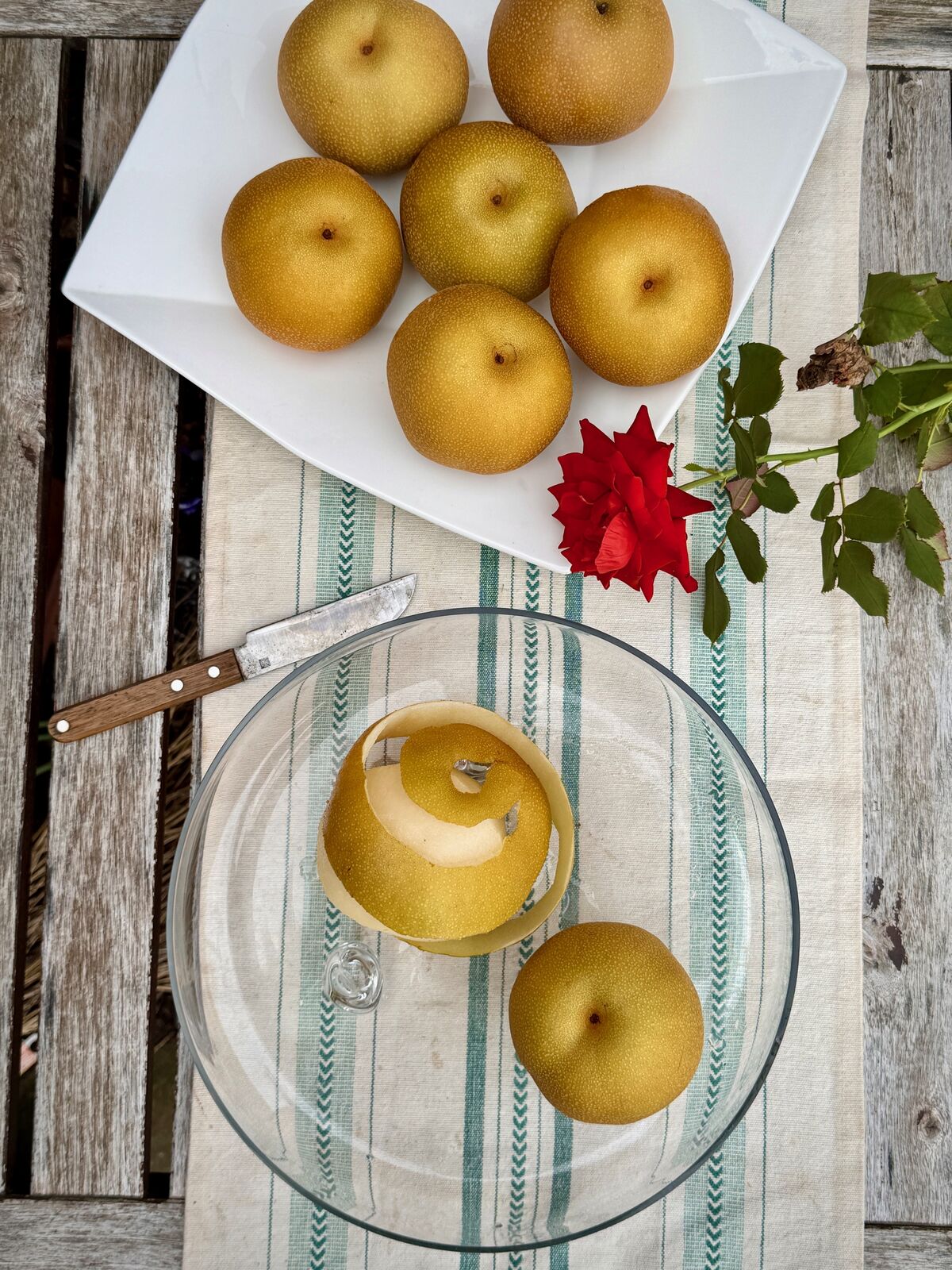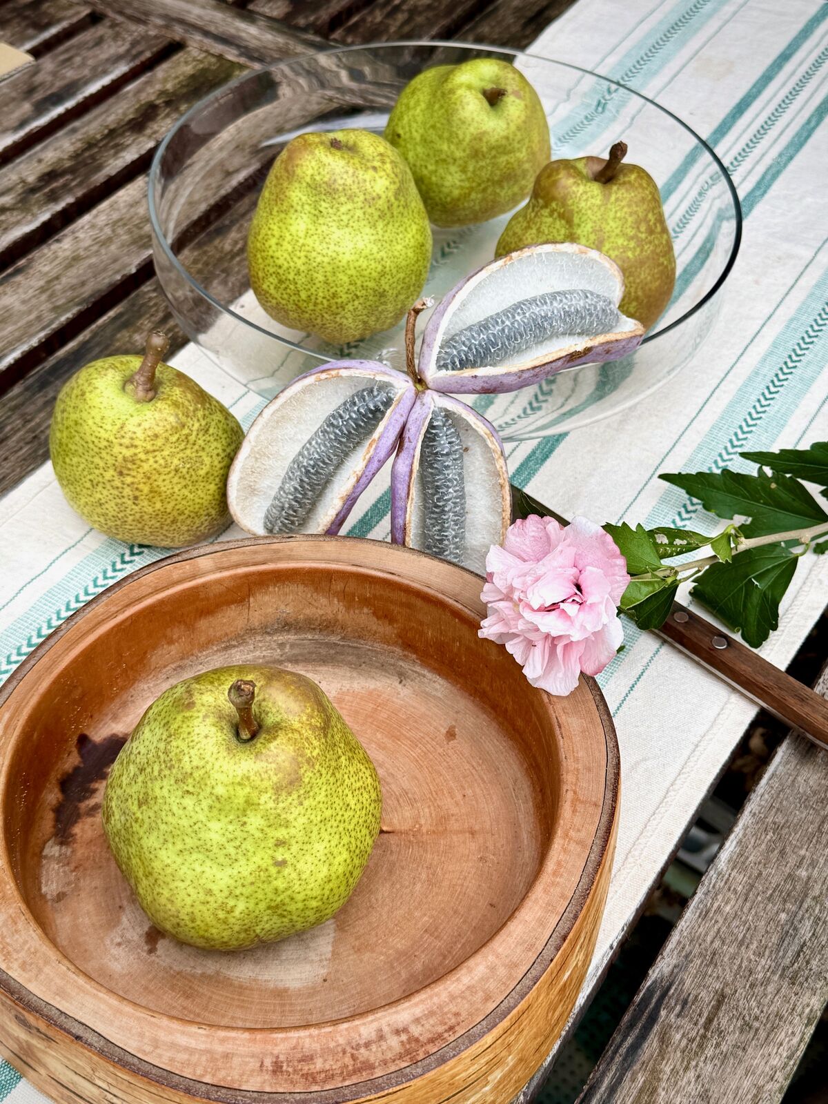 果実は、デコボコで、果皮は緑色から黄緑の地に褐色のサビが入り、見た目はあまりよりありませんが、追熟して食べ頃になると、特有の芳香ととろけるような舌触りになります。